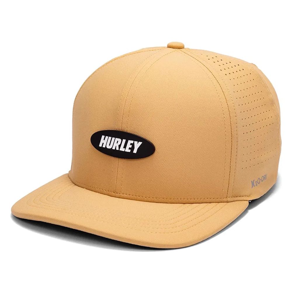 Produto importado Modelo aba curva Tecido tecnológico H2O-DRI Perfuração a laser nas laterais Metal com logotipo Hurley frontal Fechamento snapback com regulador Etiqueta bandeira One&Only Heat Transfer lateral refletivo |