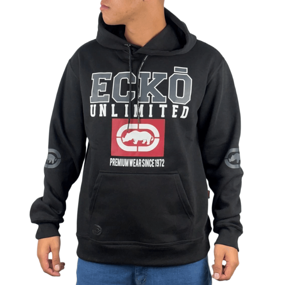 Capuz com cordões ajustáveis; Bolso canguru; Design Exclusivo; Capuz oversized; Estampas exclusivas Ecko; Medidas aproximadas em centímetros(cm) - Tórax x Altura: P: 118 x 74,5cm M: 122 x 76,5cm G: 126 x 78,5cm GG: 130 x 80,5cm |
